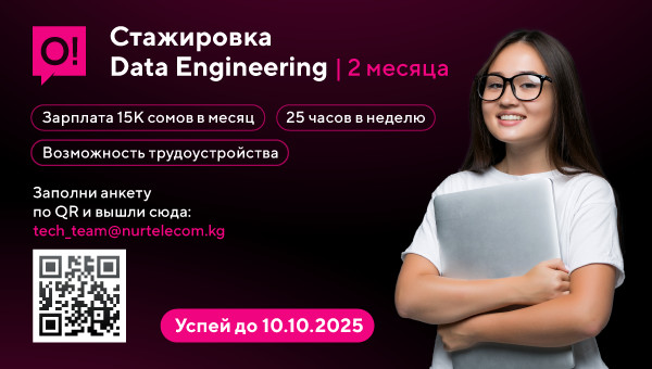 Практика по направлению Data engineer в О! – это не только опыт и новые знания, но и реальная оплата труда. Стажёры будут получать 15 000 сомов в месяц – этой суммы хватит не только на ежедневные кофе и печеньки, но и на поездки на такси.