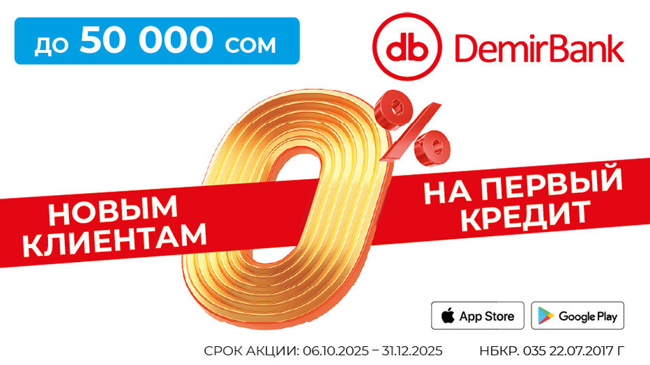 Супер-акция от DemirBank. До 50 000 сомов под 0%