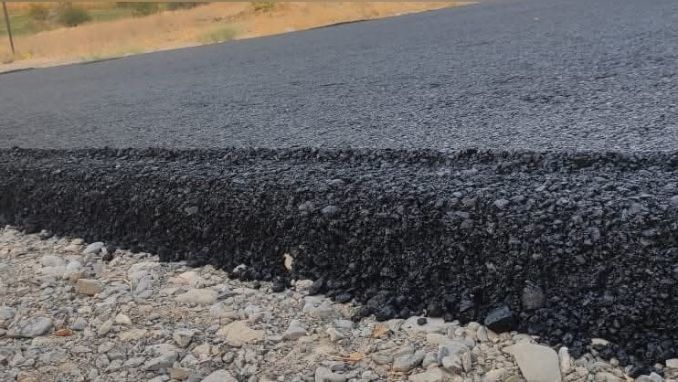 В селе Арашан Таласской области продолжаются работы по укладке асфальта на 4-километровой дороге