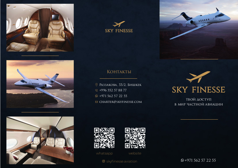 SkyFinesse — современная аренда частных самолётов для бизнеса и семейных путешествий. Из Кыргызстана — в любую точку мира.