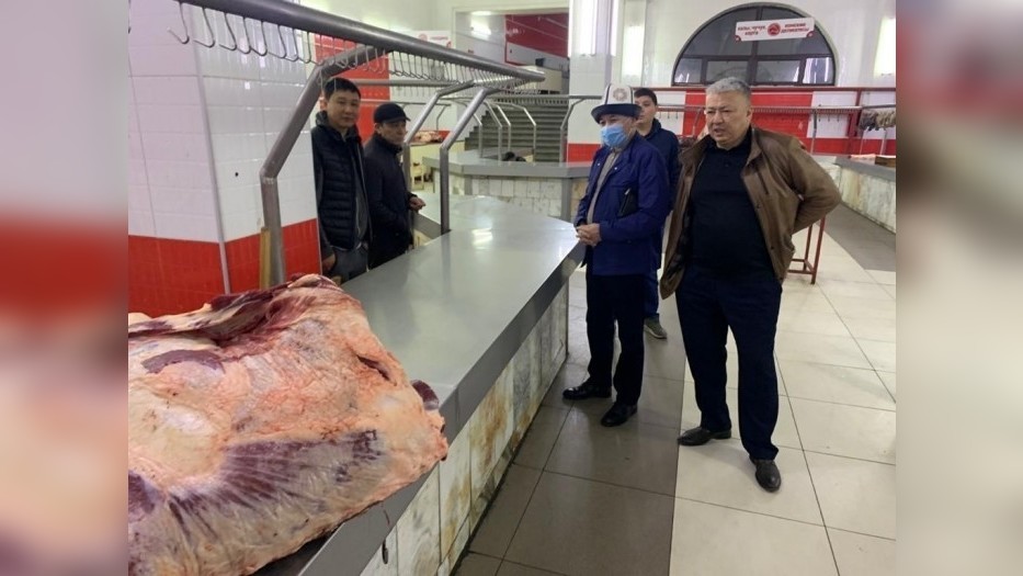 Фото — Глава Госантимонополии К.Тайлаков и сотрудники ведомства провели мониторинг цен на оптовом мясном рынке в Бишкеке