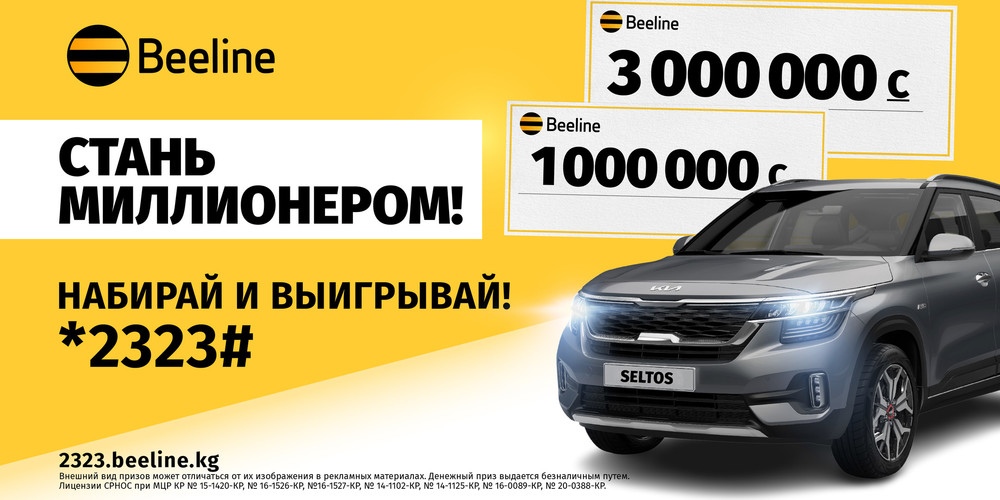 Для участия в акции наберите команду *2323# или подключитесь с помощью приложения «Мой Beeline KG» в разделе развлекательных услуг — и вы в игре.
