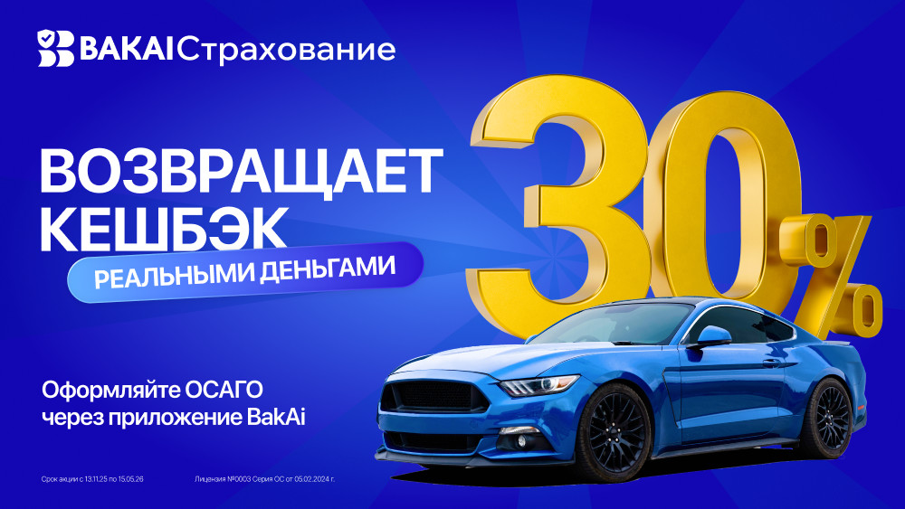 BAKAI Страхование вернули кешбэк! Оформите ОСАГО и получите кешбэк 30% реальными деньгами
