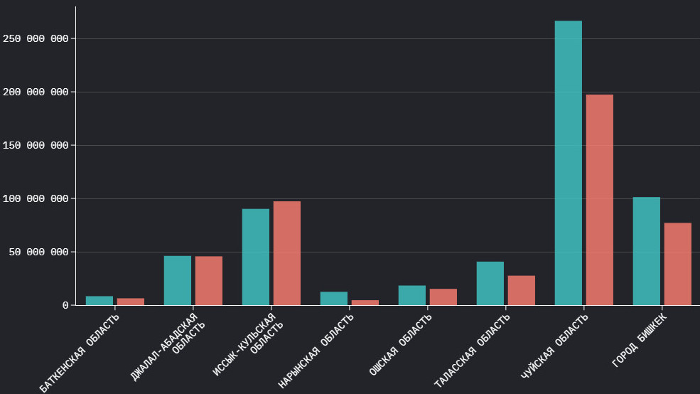 Промышленность Кыргызстана выросла почти во всех регионах: Чуй — лидер, Иссык-Куль просел из-за Кумтора, - график