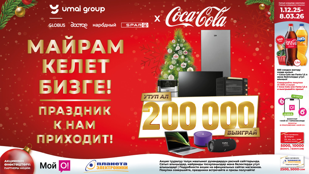 Tazabek - В сетях магазинов Globus, SPAR, «Достор» и «Народный» уже стартовала зимняя акция Umai Group – «Праздник к нам приходит!». Это как раз тот случай, когда привычные покупки могут принести не только уют в дом, но и шанс выиграть ценные призы, включая главный – 200 000 сомов.