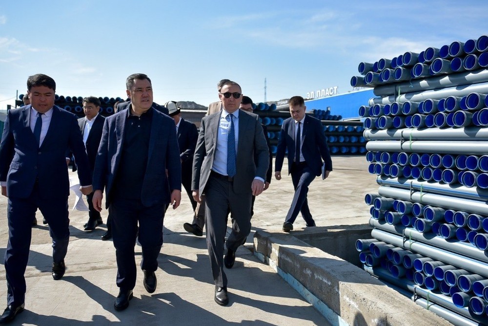 Tazabek - Президент Садыр Жапаров 10 апреля в ходе рабочей поездки в Ош посетил предприятие по производству полимерных труб «Эл Пласт». Об этом сообщает администрация президента.